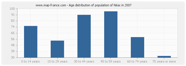 - Population of Néac from 30 to 44 years : 91 inhabitants