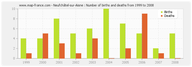 Neufchâtel-sur-Aisne : births and deaths from 1999 to 2008