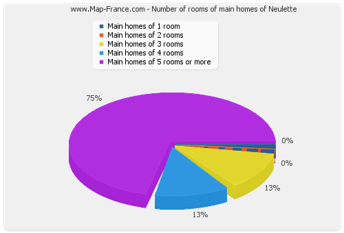 - Number of main homes of Neulette of 1 room : 0 - Number of main homes of Neulette of 2 rooms : 0 - Number of main homes of Neulette of 3 rooms : 1 - Number of main homes of Neulette of 4 rooms : 1 - Number of main homes of Neulette of 5 rooms and more : 6 |