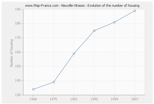 The number of housing of Neuville-Vitasse was 189 in 2007, 181 in 1999, 175 in 1990, 159 in 1982, 139 in 1975 and 134 in 1968.