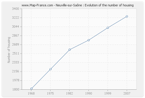 The number of housing of Neuville-sur-Saône was 3 250 in 2007, 3 024 in 1999, 2 779 in 1990, 2 589 in 1982, 2 203 in 1975 and 1 816 in 1968.