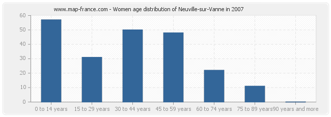 Women population distribution of Neuville-sur-Vanne by age in 2007 :
