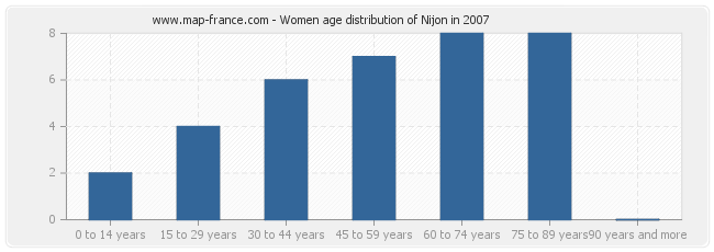 - Nijon women inhabitants from 75 to 90 years : 8