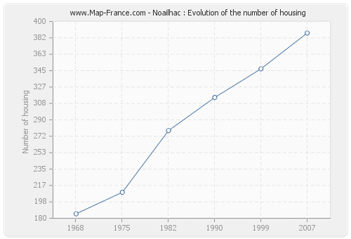 The number of housing of Noailhac was 387 in 2007, 347 in 1999, 315 in 1990, 278 in 1982, 209 in 1975 and 185 in 1968.