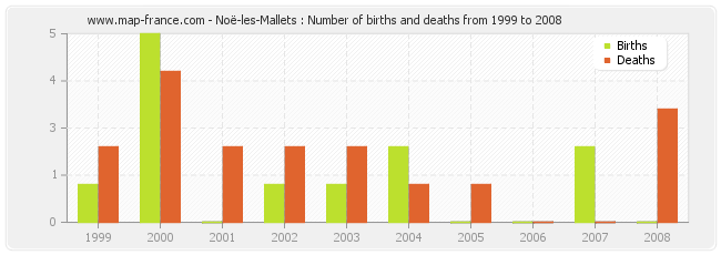 Noë-les-Mallets : births and deaths from 1999 to 2008