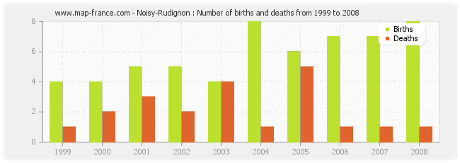 Noisy-Rudignon : births and deaths from 1999 to 2008