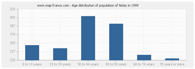 - Population of Nolay from 45 to 59 years : 291 inhabitants