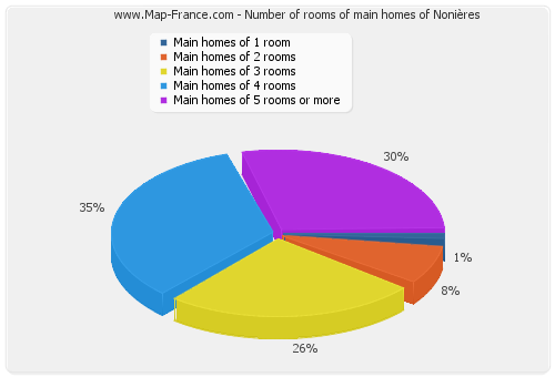 - Number of main homes of Nonières of 1 room : 1 - Number of main homes of Nonières of 2 rooms : 7 - Number of main homes of Nonières of 3 rooms : 23 - Number of main homes of Nonières of 4 rooms : 23 - Number of main homes of Nonières of 5 rooms and more : 26 |