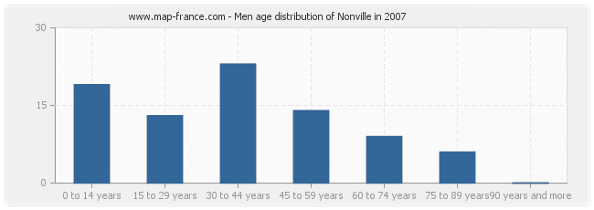 - Population of Nonville from 30 to 44 years : 19 inhabitants