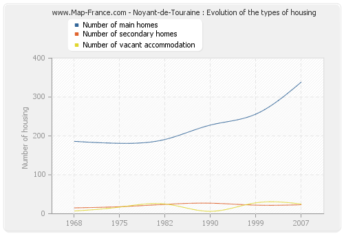 The number of housing of Noyant-de-Touraine was 386 in 2007, 306 in 1999, 261 in 1990, 240 in 1982, 216 in 1975 and 208 in 1968.