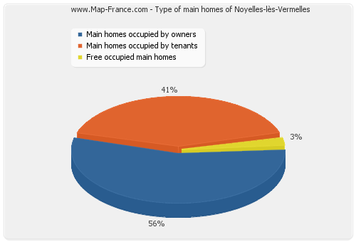 - Number of main homes of Noyelles-lès-Vermelles occupied by owners : 411 - Number of main homes of Noyelles-lès-Vermelles occupied by tenants : 304 - Number of main homes of Noyelles-lès-Vermelles occupied free of charge : 19 |