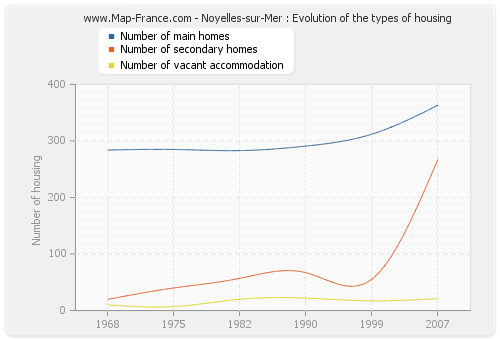 The number of housing of Noyelles-sur-Mer was 649 in 2007, 384 in 1999, 380 in 1990, 360 in 1982, 332 in 1975 and 314 in 1968.