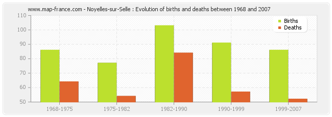 Noyelles-sur-Selle : evolution of births and deaths from 1968 to 2007