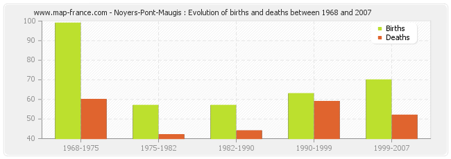 Noyers-Pont-Maugis : evolution of births and deaths from 1968 to 2007