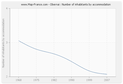 The number of inhabitants of Obernai per housing was 2,07 in 2007.