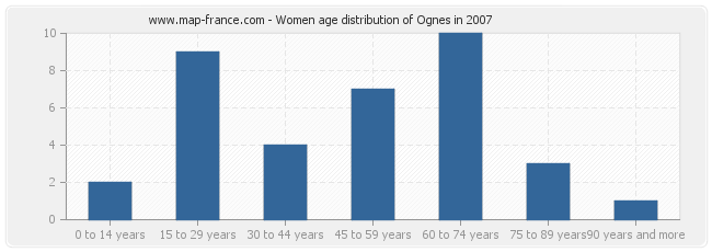 - Ognes women inhabitants from 60 to 74 years : 10