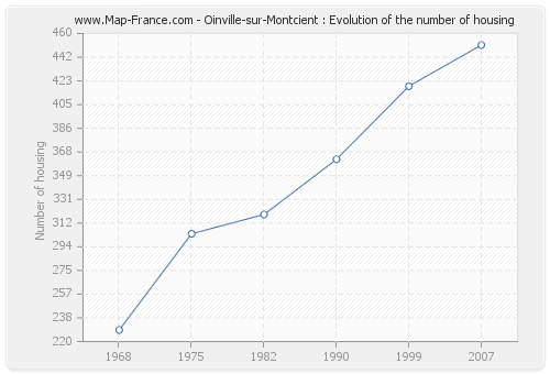 The number of housing of Oinville-sur-Montcient was 451 in 2007, 419 in 1999, 362 in 1990, 319 in 1982, 304 in 1975 and 229 in 1968.
