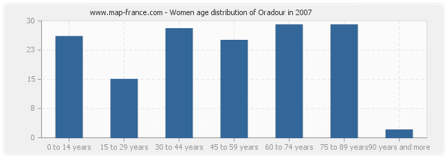- Men inhabitants Oradour in 2007 were 151 - Women inhabitants in 2007 were 155