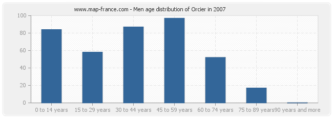 - Men inhabitants Orcier in 2007 were 395 - Women inhabitants in 2007 were 391