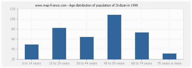 - Population of Ordizan from 45 to 59 years : 108 inhabitants