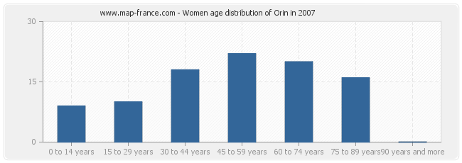 - Population of Orin from 30 to 44 years : 33 inhabitants