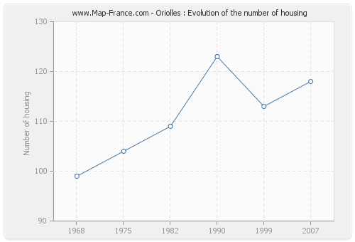 The number of housing of Oriolles was 118 in 2007, 113 in 1999, 123 in 1990, 109 in 1982, 104 in 1975 and 99 in 1968.