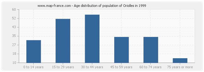 - Population of Oriolles from 30 to 44 years : 55 inhabitants