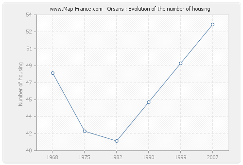 The number of housing of Orsans was 53 in 2007, 49 in 1999, 45 in 1990, 41 in 1982, 42 in 1975 and 48 in 1968.