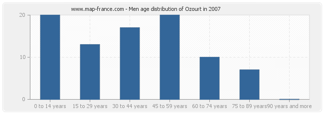 - Ozourt men inhabitants from 15 to 29 years : 13