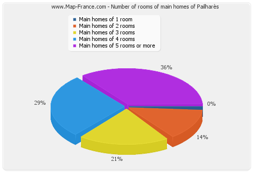 - Number of main homes of Pailharès of 1 room : 0 - Number of main homes of Pailharès of 2 rooms : 17 - Number of main homes of Pailharès of 3 rooms : 25 - Number of main homes of Pailharès of 4 rooms : 25 - Number of main homes of Pailharès of 5 rooms and more : 44 |