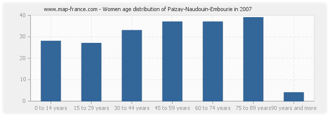- Paizay-Naudouin-Embourie women inhabitants from 75 to 90 years : 39