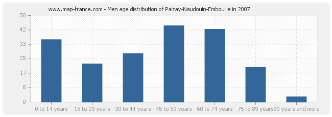 - Paizay-Naudouin-Embourie men inhabitants from 45 to 59 years : 44