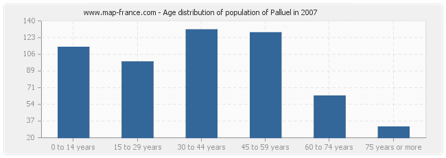 - Population of Palluel from 30 to 44 years : 133 inhabitants