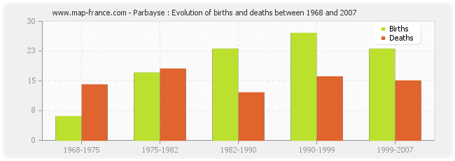 Parbayse : evolution of births and deaths from 1968 to 2007
