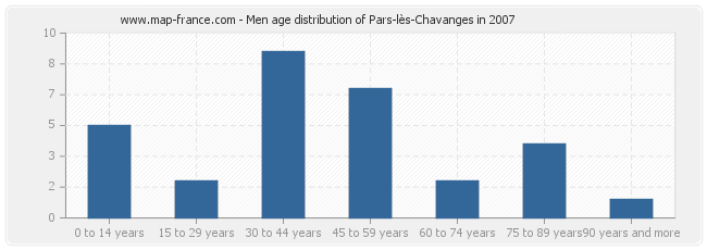 Men population distribution of Pars-lès-Chavanges by age in 2007 :