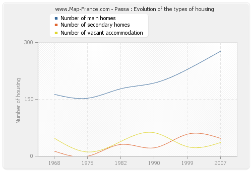 The number of housing of Passa was 360 in 2007, 312 in 1999, 277 in 1990, 248 in 1982, 164 in 1975 and 223 in 1968.