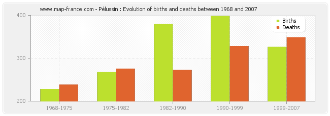 Pélussin : evolution of births and deaths from 1968 to 2007