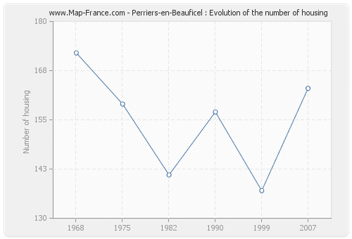 The number of housing of Perriers-en-Beauficel was 163 in 2007, 137 in 1999, 157 in 1990, 141 in 1982, 159 in 1975 and 172 in 1968.