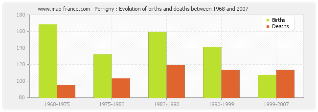 Perrigny : evolution of births and deaths from 1968 to 2007