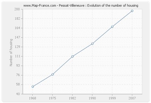 The number of housing of Pessat-Villeneuve was 197 in 2007, 167 in 1999, 135 in 1990, 111 in 1982, 77 in 1975 and 54 in 1968.