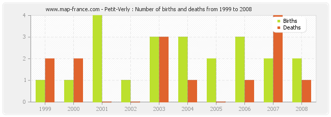 - Petit-Verly in 2008 : 2 births and 1 deaths
