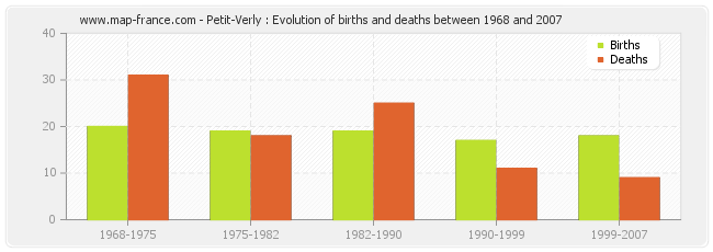 Petit-Verly : evolution of births and deaths from 1968 to 2007