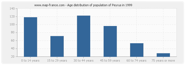 - Population of Peyrus from 30 to 44 years : 122 inhabitants