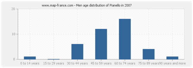 - Population of Pianello from 60 to 74 years : 34 inhabitants