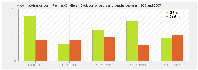 Piennes-Onvillers : evolution of births and deaths from 1968 to 2007