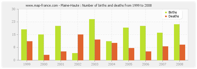 - Plaine-Haute in 2008 : 21 births and 9 deaths