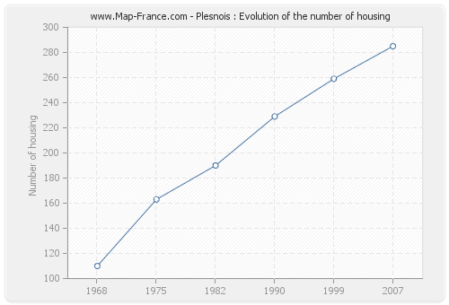 The number of housing of Plesnois was 285 in 2007, 259 in 1999, 229 in 1990, 190 in 1982, 163 in 1975 and 110 in 1968.