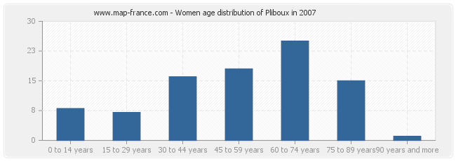 - Pliboux women inhabitants from 60 to 74 years : 25