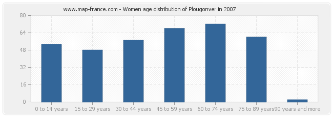 - Plougonver women inhabitants from 60 to 74 years : 72