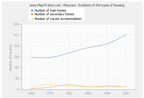 The number of housing of Plouvara was 464 in 2007, 396 in 1999, 363 in 1990, 340 in 1982, 303 in 1975 and 269 in 1968.